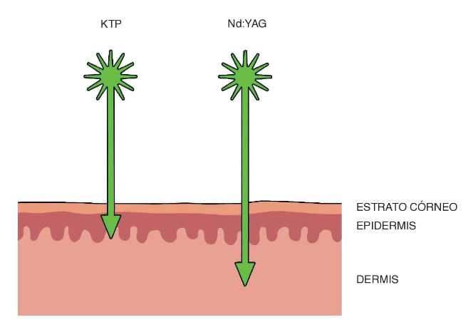 Referencia visual: Figura 18.1 – Ilustra cómo la energía del láser se transforma en calor al interactuar con los cromóforos, lo que explica el mecanismo de estas lesiones.