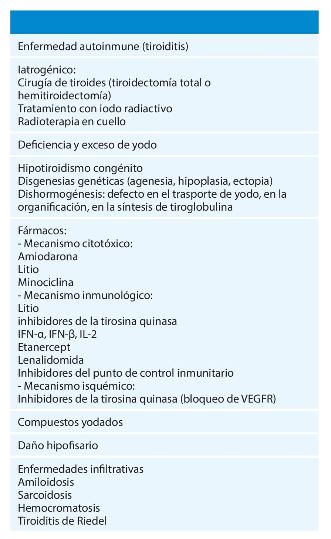 La etiología del hipotiroidismo varía según la región geográfica y el contexto clínico.