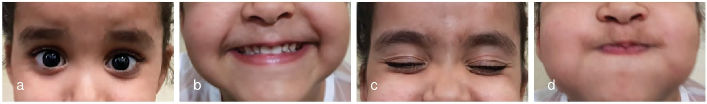 Una niña de 4 años consultó por pérdida completa de las expresiones faciales con un mes de evolución. Los síntomas comenzaron de forma insidiosa con debilidad facial derecha, seguida de desviación del ángulo de la boca, cierre ocular incompleto y, posteriormente, compromiso bilateral completo. No existían antecedentes infecciosos, traumáticos ni quirúrgicos relevantes.